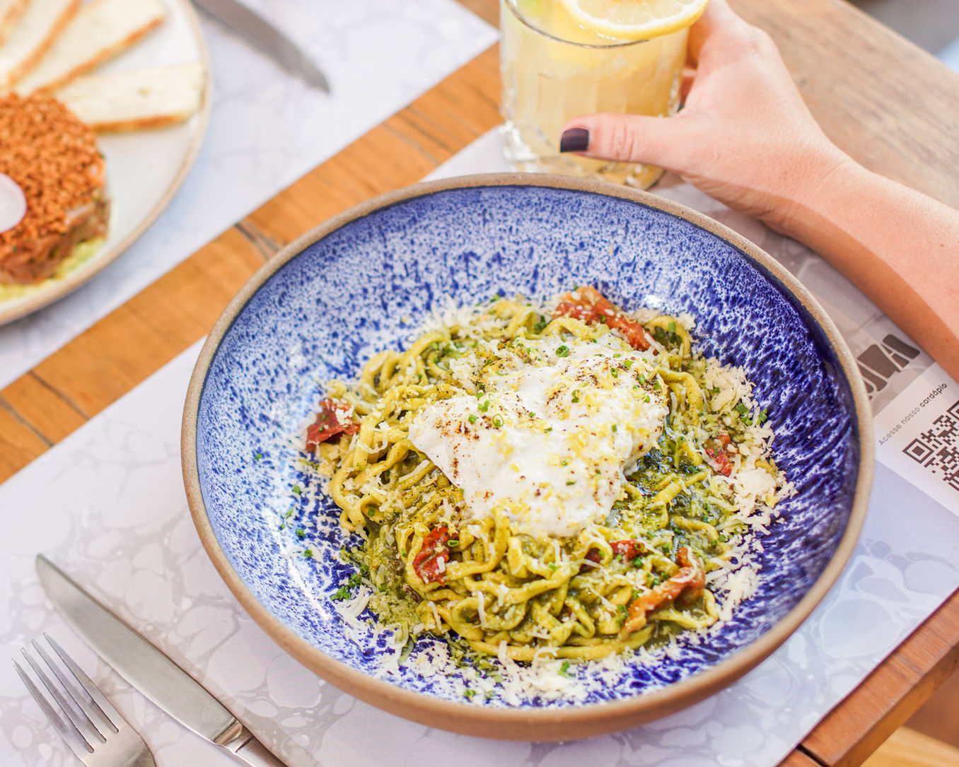 Localizado no polo gastronômico mais badalado do Rio de Janeiro, o Nola oferece um ambiente confortável e descontraído com um cardápio variado de opções frescas, deliciosas e cuidadosamente preparadas pelo Chef Thiago Sodré. Seja um almoço de negócios, um drink pós trabalho ou um jantar especial, nossa equipe está sempre disponível para cuidar muito bem de você e agradar todos os paladares.